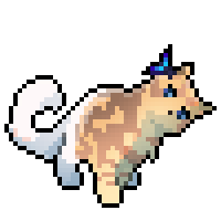 Pearlycreek is a long-furred golden tabby and white tom with cobalt eyes.